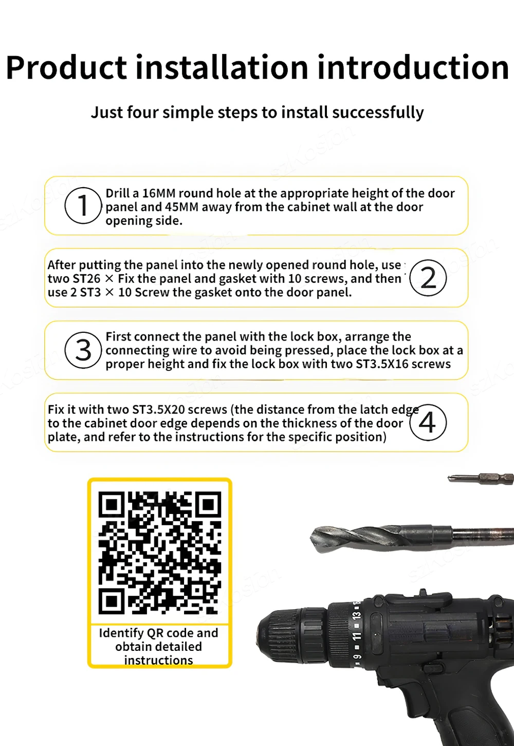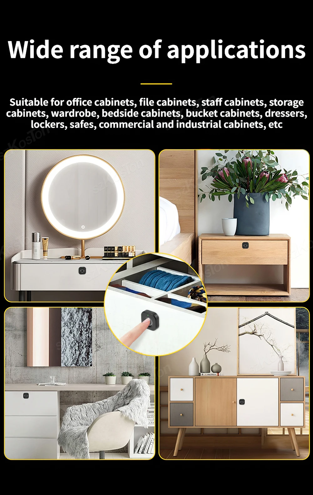 This is an intelligent fingerprint drawer cabinet lock, which can be unlocked by fingerprint and tuya APP, and it is easy and convenient to use without a key. Support furniture file cabinet shoe cabinet letter box drawer installation and use