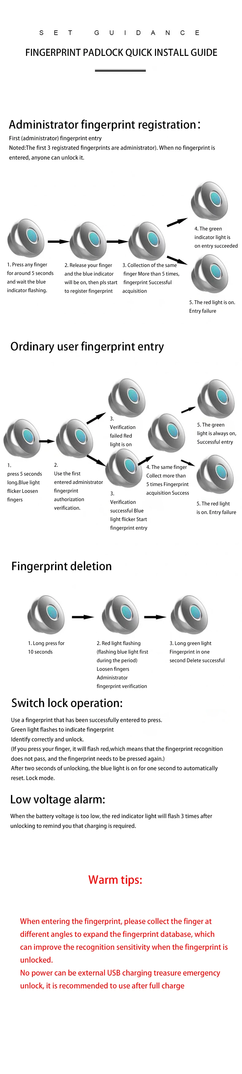 2. When the lock does not store fingerprints, any finger can unlock the lock